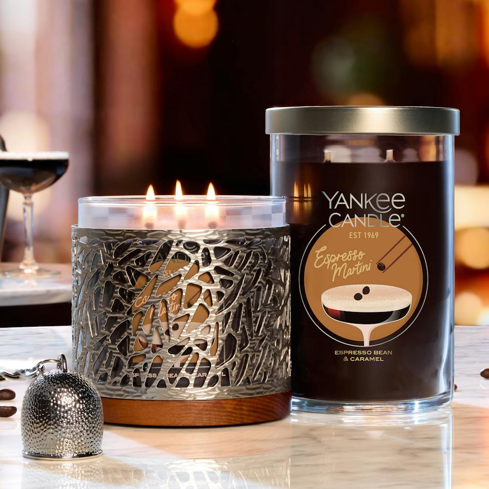 It's fun to prepare your home for every season, any celebration or just because. We love how candle holders make any setting special and how they complement our fragrances. Try a new candle holder and see what a big change a little touch can make! Under the soft glow of your candle, this champagne-plated accent with an intricately patterned design and a wooden-base finish brings sophistication to everyday use.It's fun to prepare your home for every season, any celebration or just because. We love how candle holders make any setting special and how they complement our fragrances. Try a new candle holder and see what a big change a little touch can make! For use with our Original Large Jar Candles, Large Tumbler Candles and 3-Wick Candles